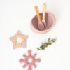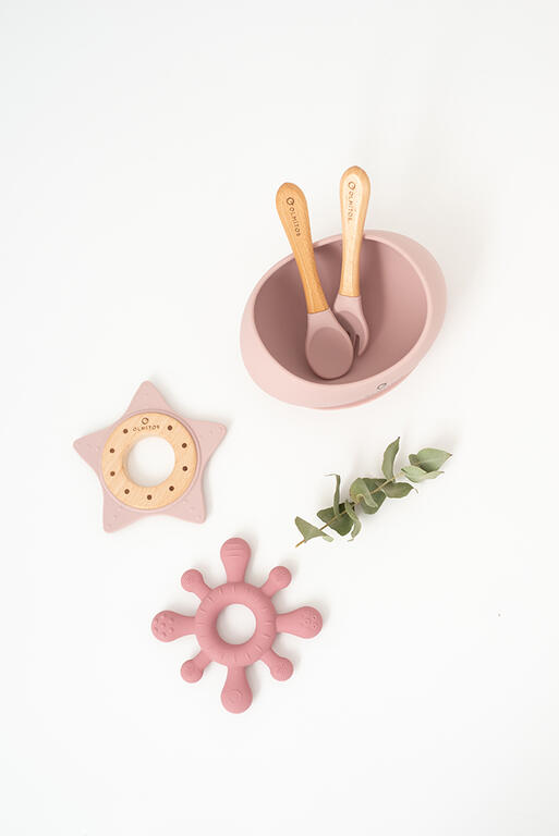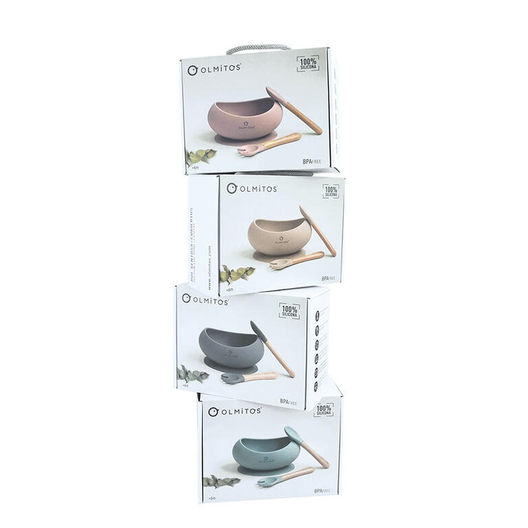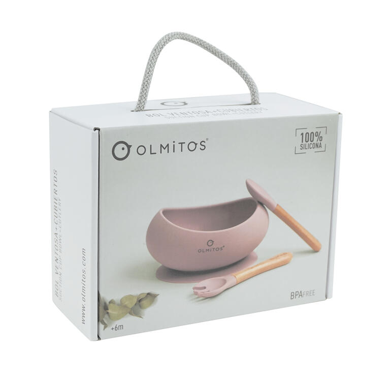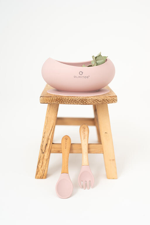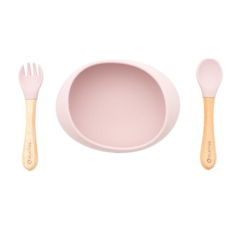 Contiene: bol con ventosa, cuchara y tenedor de madera haya y silicona. Silicona de alta calidad de grado alimenticio aprobada por LFGB. Ideal para Baby-Led Weaning.