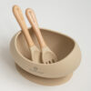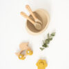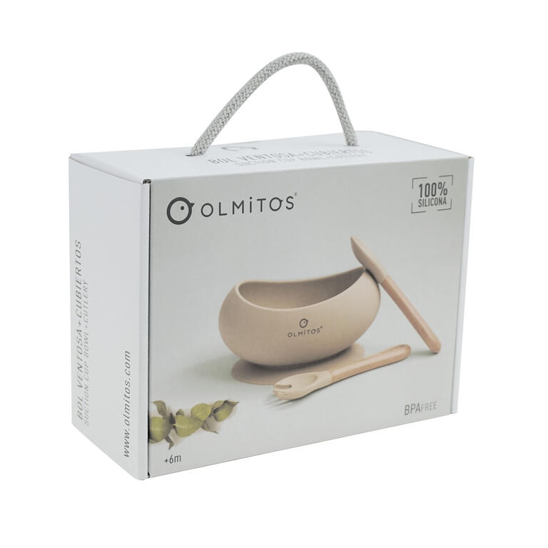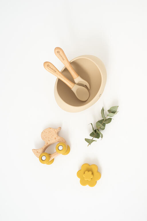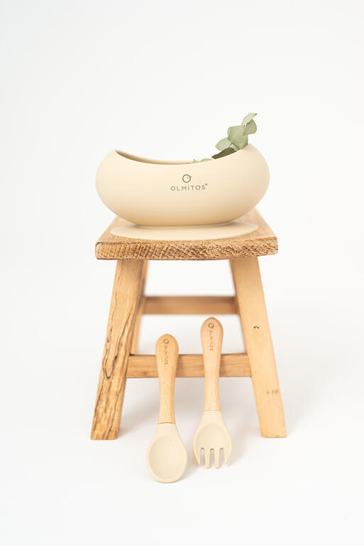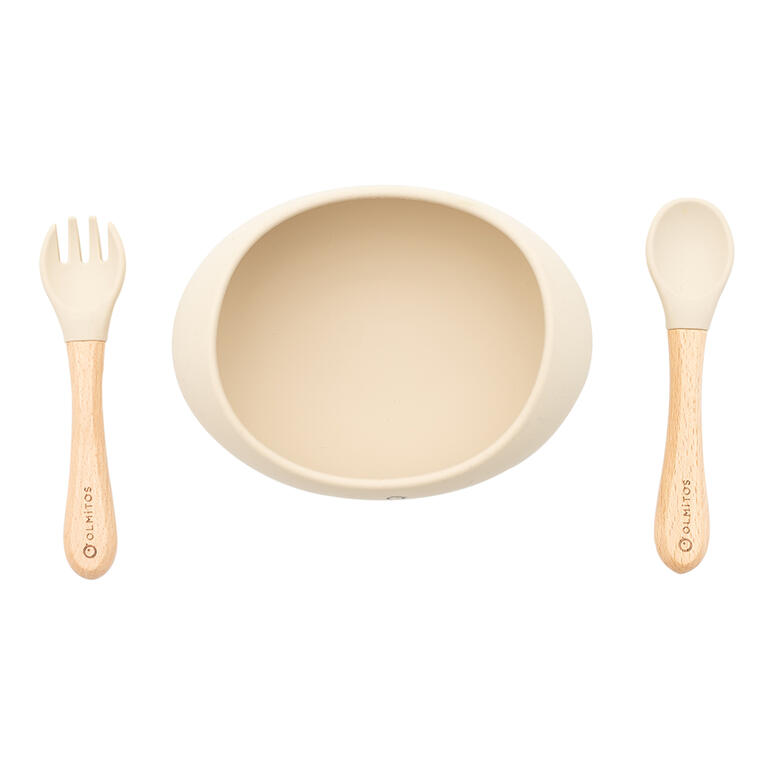 Contiene: bol con ventosa, cuchara y tenedor de madera haya y silicona. Silicona de alta calidad de grado alimenticio aprobada por LFGB. Ideal para Baby-Led Weaning.