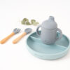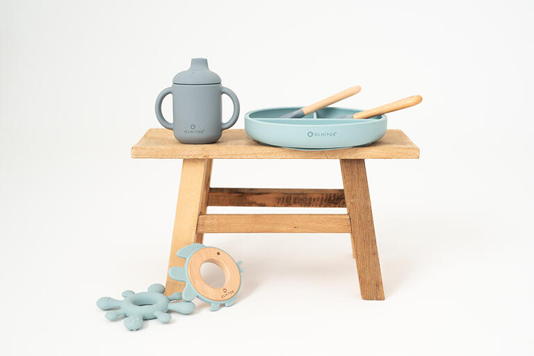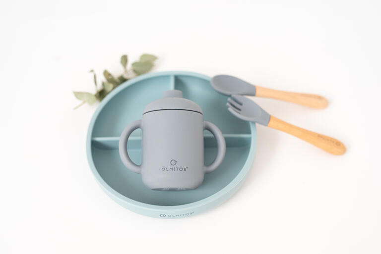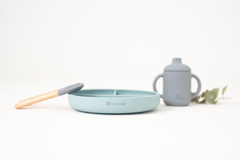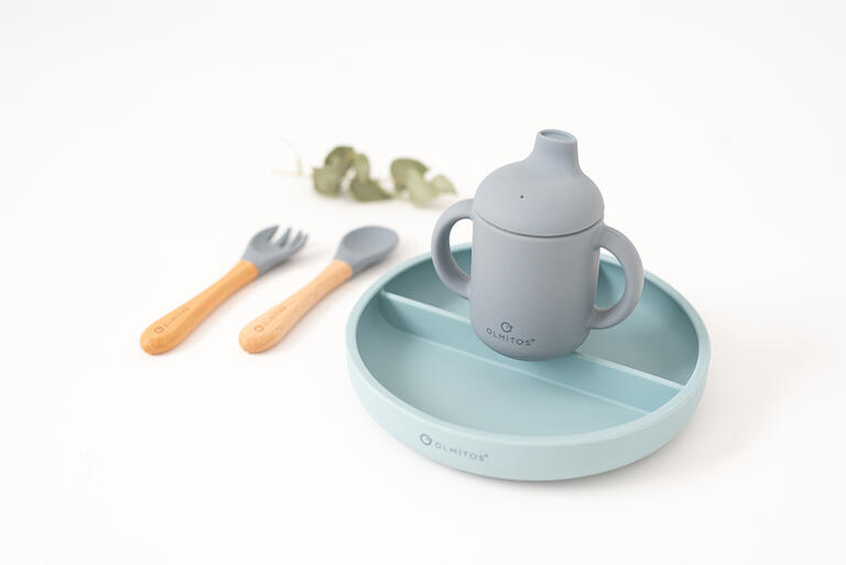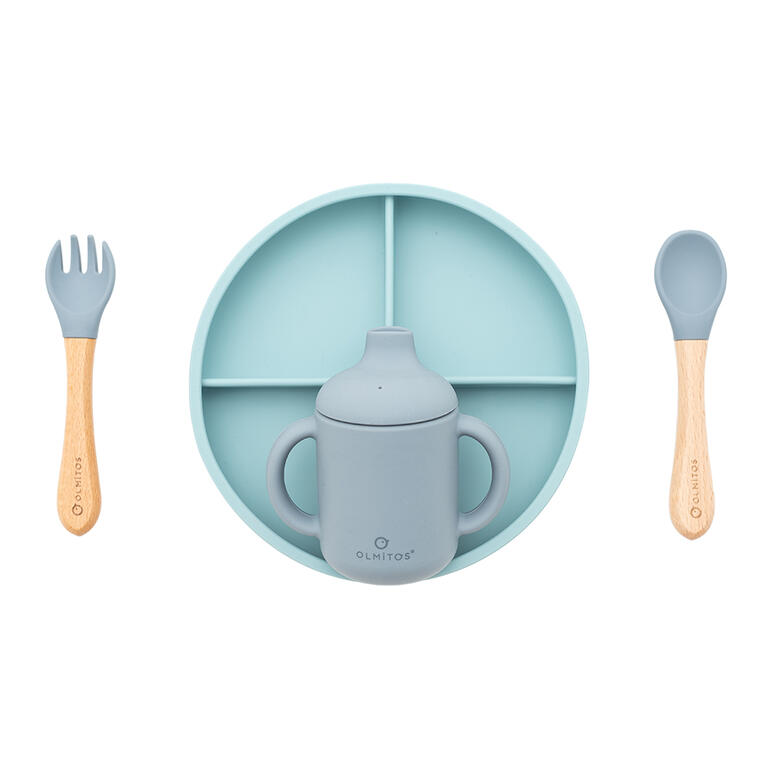Silicona de alta calidad de grado alimenticio aprobada por LFGB. Cubiertos con formas redondeadas y suaves para evitar dañar la encía del niño.