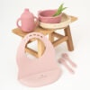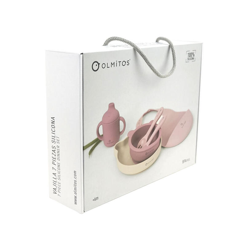 Contiene: Babero, plato, bol, cuchara, tenedor y vaso con boquilla. Silicona de alta calidad de grado alimenticio aprobada por LFGB.