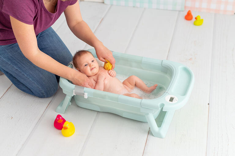 – Diseñada especialmente para familias que buscan comodidad y seguridad, esta bañera es compacta y fácil de plegar, lo que permite guardarla sin problemas o llevarla de viaje.