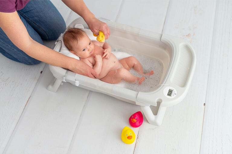 – Diseñada especialmente para familias que buscan comodidad y seguridad, esta bañera es compacta y fácil de plegar, lo que permite guardarla sin problemas o llevarla de viaje.