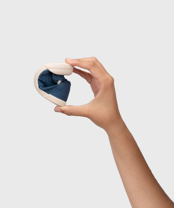 Zapatilla de lona con doble cierre adherente 100% algodón, de concepto barefoot medium, cero drop, flexible, blandita y con plantilla extraíble. El tinte de nuestras lonas es irregular por su efecto lavado. Lavar en agua fría no sin antes extraer la plantilla.