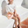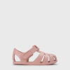 Cangrejera diseñada en concepto barefoot medium, cero drop, flexible y blandita, fabricada con al menos un 50% de pvc reciclado libre de ftalatos y cierre adherente.