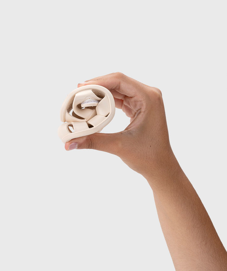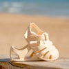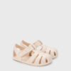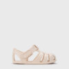 Cangrejera diseñada en concepto barefoot medium, cero drop, flexible y blandita, fabricada con al menos un 50% de pvc reciclado libre de ftalatos y cierre adherente.