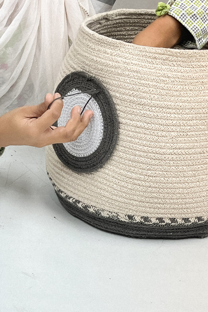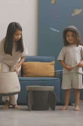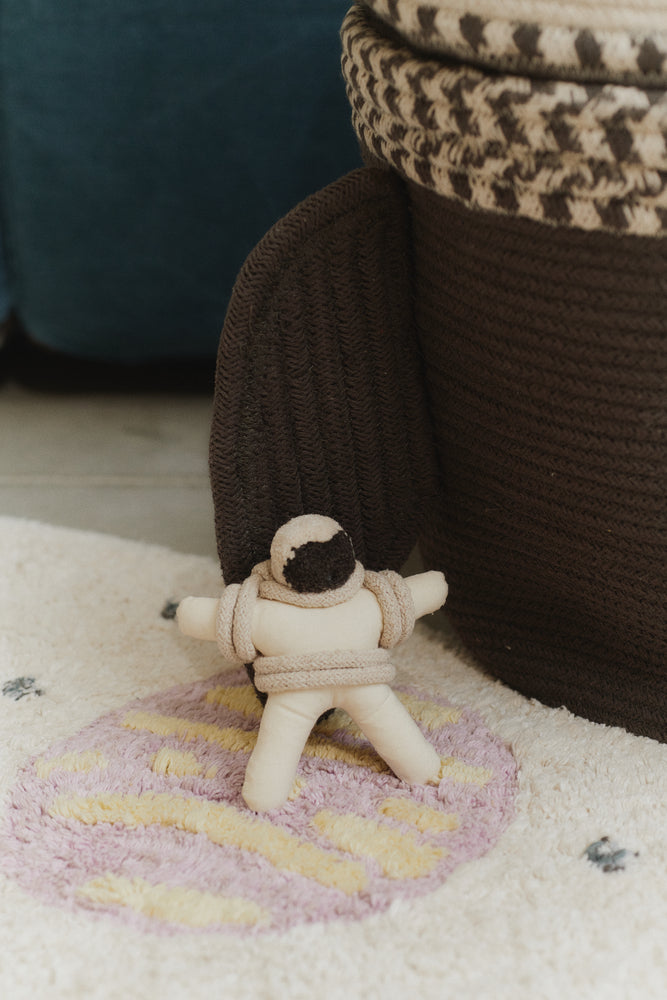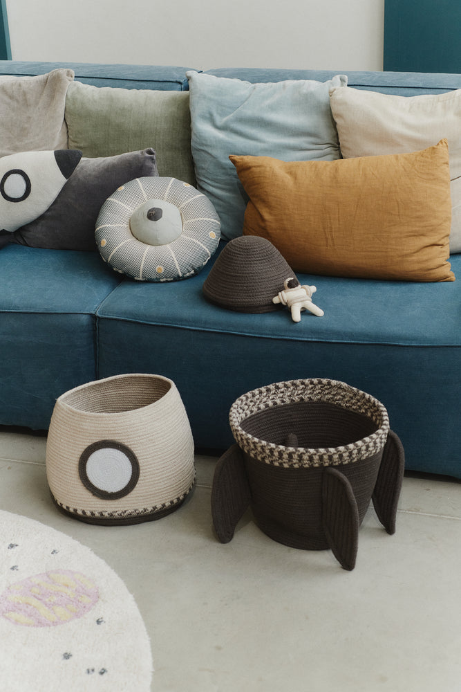 ¡Abróchate el cinturón, porque estamos a punto de despegar directos al espacio exterior! La gigante Rocket no es sólo una cesta, sino tres que pueden apilarse convirtiéndose en una nave espacial lista para volar por la galaxia. Fabricada a mano con cuerda de algodón y relleno de botellas de PET reciclado, es tan resistente como una roca lunar. Incluye un mini astronauta textil de juguete listo para pilotar la nave y dejar volar la imaginación. Una combinación única de diseño, sostenibilidad, funcionalidad y diversión en una sola cesta: el Cohete Gigante.