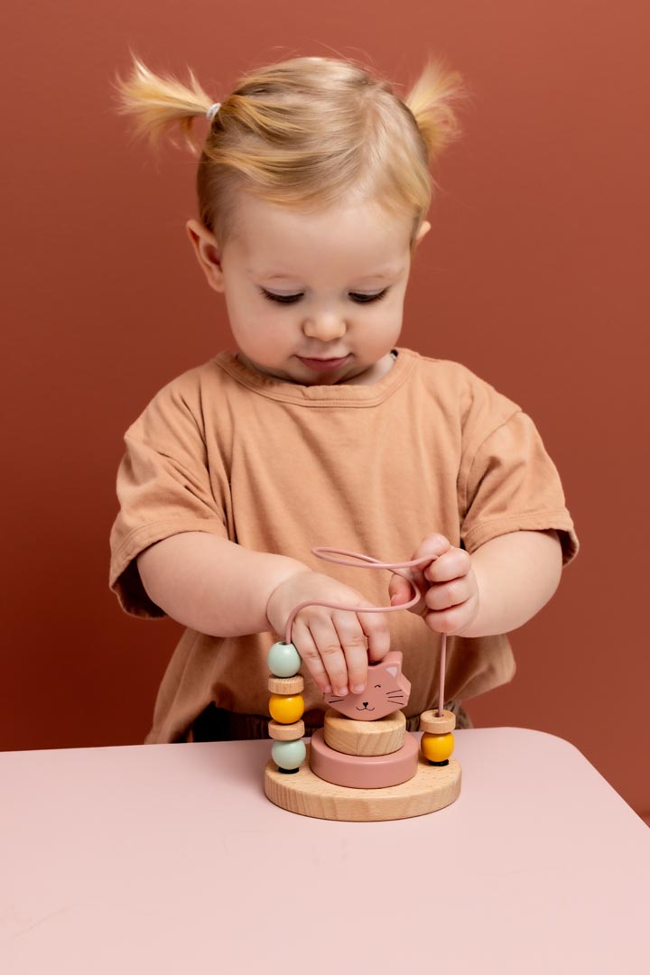 ¡Un pequeño laberinto con cuentas para poner a prueba esas habilidades motoras finas! Las cuentas de diferentes colores y formas se deslizan a lo largo del alambre. La diversión continúa mientras apilas las diferentes partes en el orden correcto, ¡hasta que tu amigo animal esté completo! Este producto le ofrecerá a tu pequeño horas de diversión tratando de dominar estas habilidades. Todos los elementos están hechos de madera 100% certificada FSC®. Todas las pinturas utilizadas son a base de agua, seguras para los niños y no tóxicas.