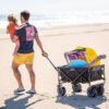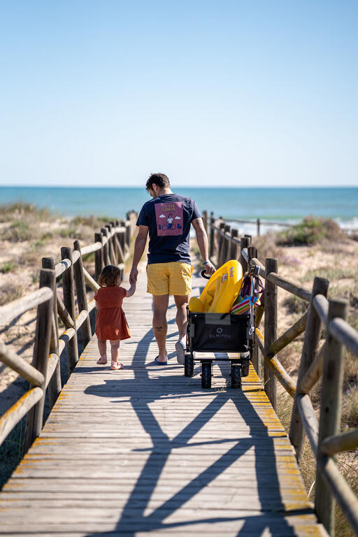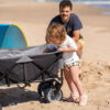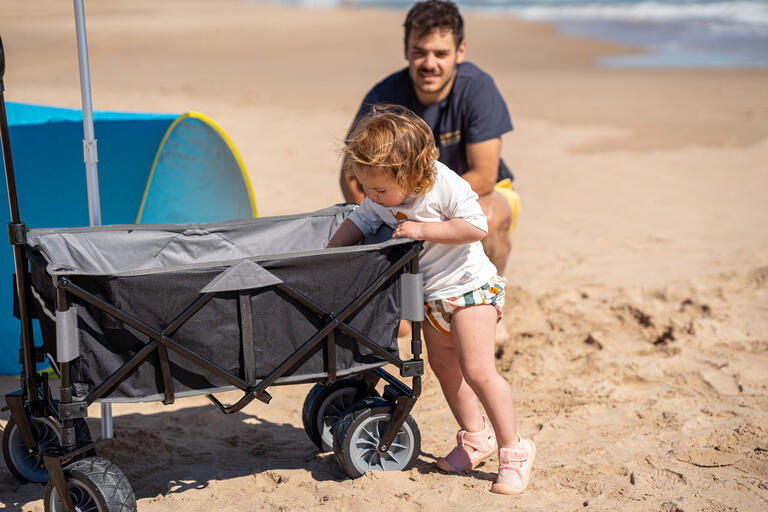 Carro de transporte, plegable para la playa, el camping o ir al supermercado. Su estructura de acero muy resistente, con 4 grandes ruedas con freno en las delanteras, hace que sea ideal para utilizarlo tanto en la playa como en los terrenos más irregulares.