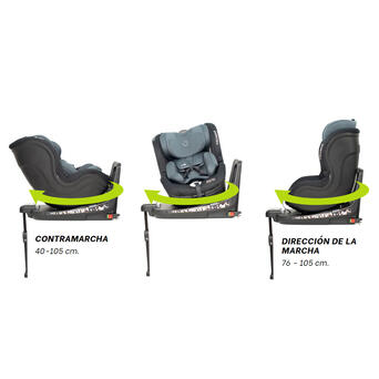 – Homologada a contramarcha, puede orientarse a favor de la marcha desde los 76 cm. o 15 meses hasta los 105 cm. de estatura.