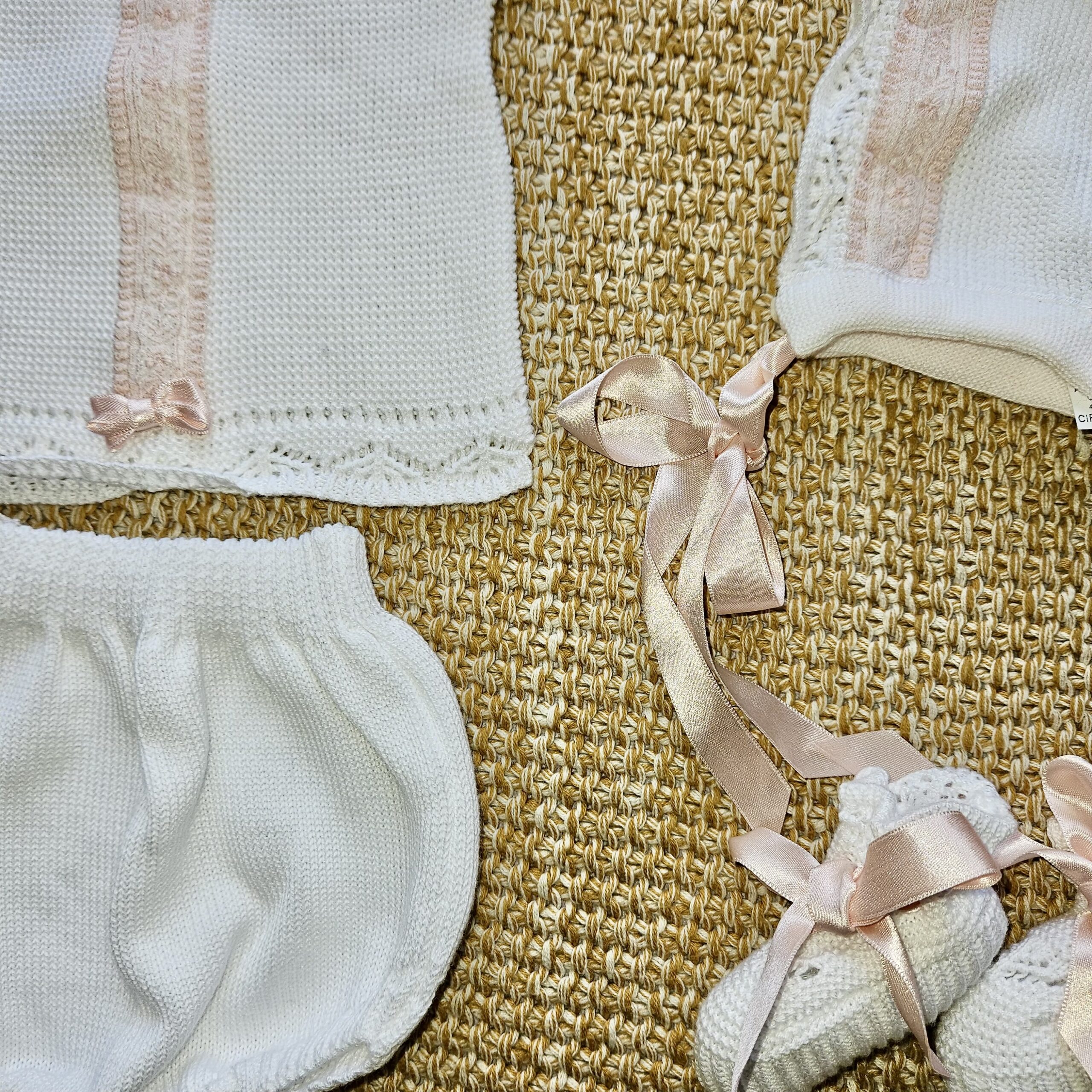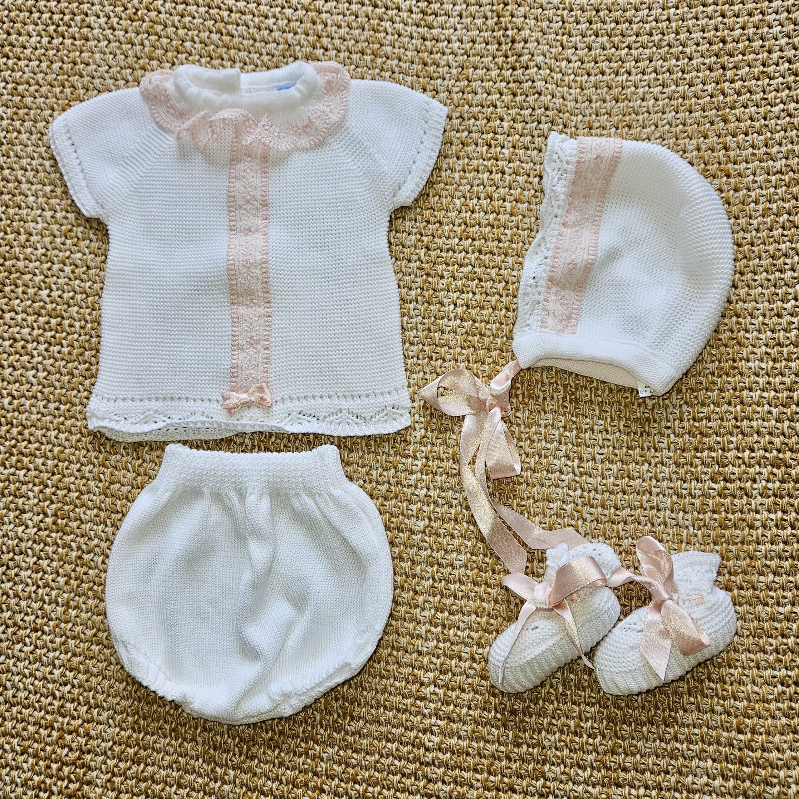 Traje 4P Corto Delicada Selina Blanco-Rosa