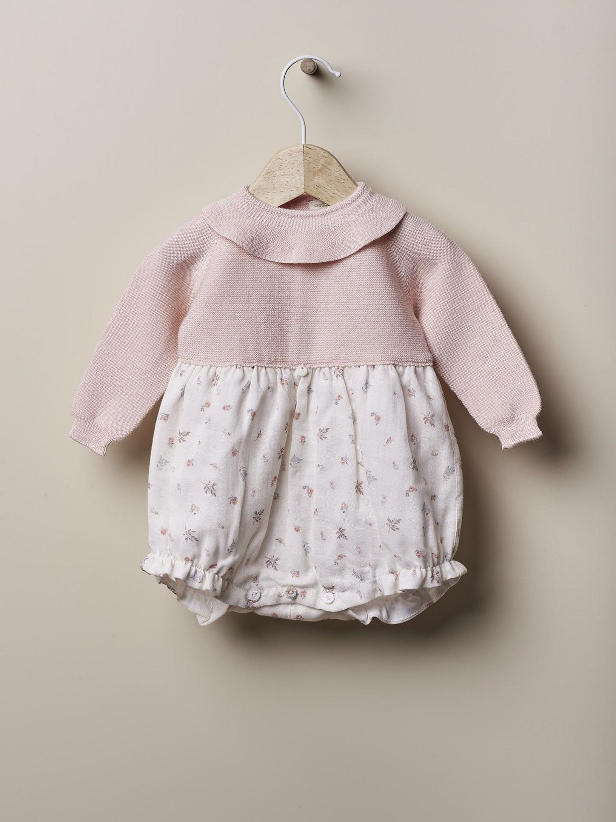 Pantalón corto de manga larga ideal para bebés niños y niñas, hasta los 24 meses. El corpiño del shortie LOVE OF MY LIFE está suavemente tejido en punto acanalado inglés de lana merino extrafina. Los pantalones cortos ligeros de algodón orgánico tienen un estampado de flores dulces en fondo perlado y están forrados para mayor comodidad. Hay cierres de botones de nácar en la parte trasera y entre las piernas. Producido en Wholegarment, sin costuras de una sola pieza, para la máxima comodidad para su bebé.