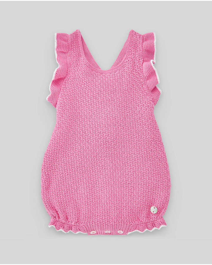 Pelele corto para bebé, 100% algodón. Lleva tirantes y la espalda es escotada.