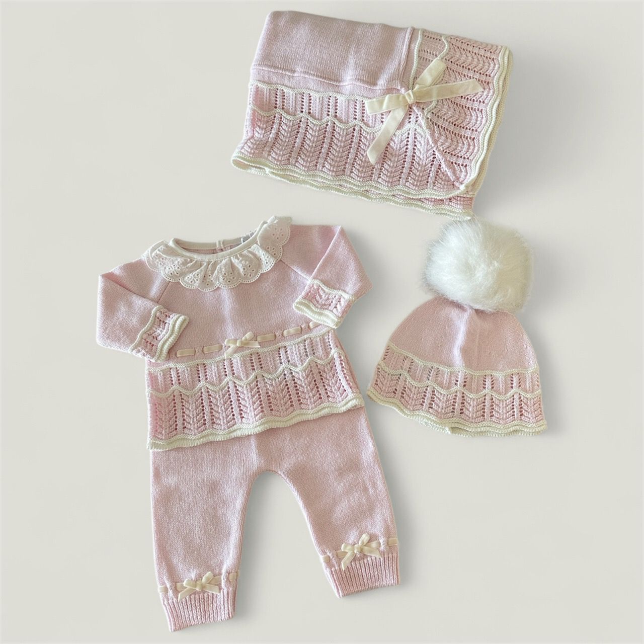 Manta + Conjunto 3P Lazos Rosa Bebé