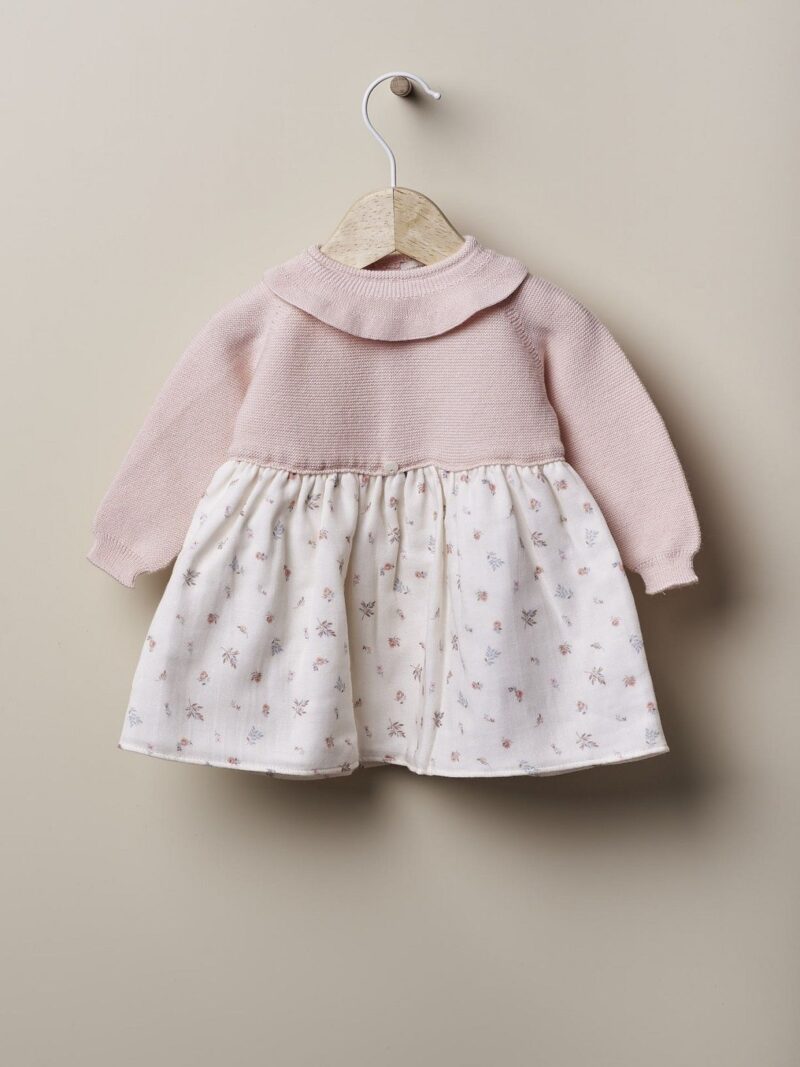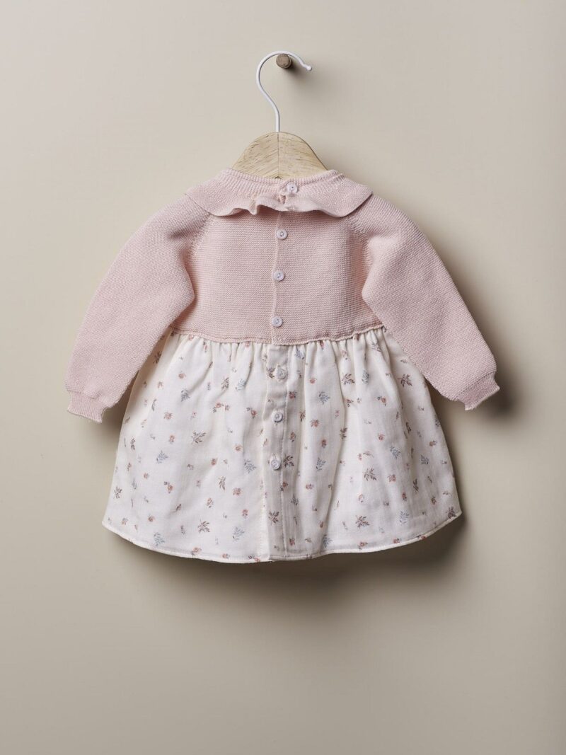 estido de manga larga ideal para bebés niñas, hasta 4 años. El corpiño del vestido LOVE OF MY LIFE está suavemente tejido en punto acanalado inglés de lana merino extrafina. La falda ligera de algodón orgánico tiene un dulce estampado de flores en fondo perlado y está forrada para mayor comodidad. Hay cierres de botones de nácar en la parte trasera. Producido en Wholegarment, sin costuras de una sola pieza, para la máxima comodidad para su bebé.
